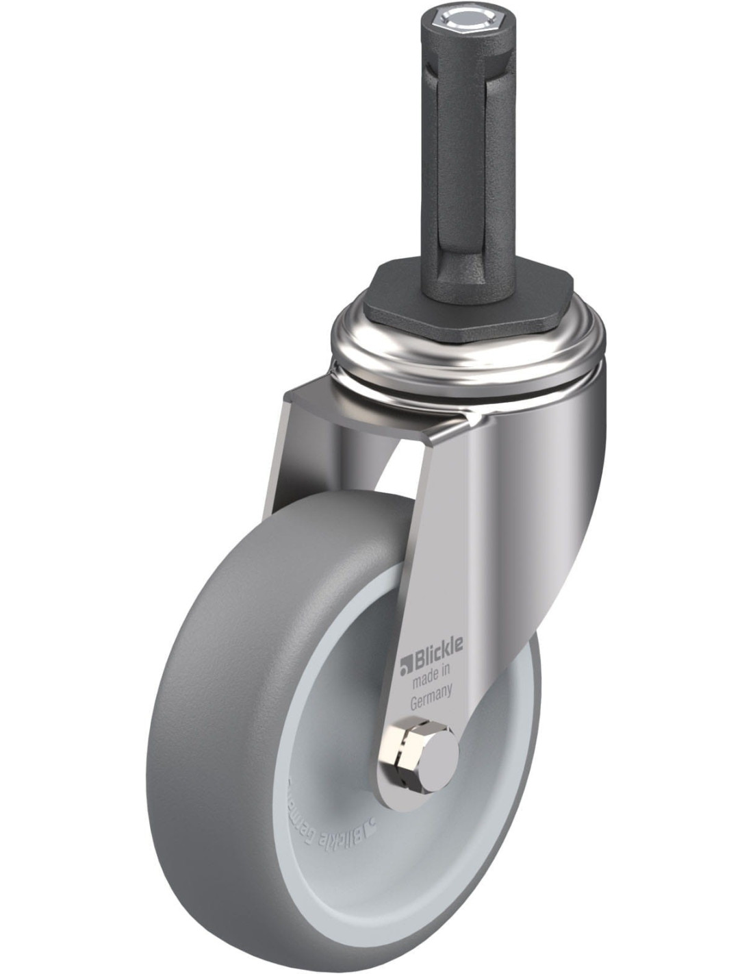 Šis pasukamas ratukas pagamintas iš nerūdijančio plieno ir turi guminį protektorių. Jis pasižymi aukštu cheminiu atsparumu ir tinka naudoti įvairiose sąlygose.