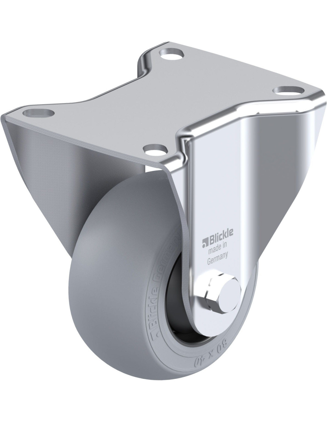 - padanga: aukštos kokybės elastinga kietoji guma „Blickle SoftMotion“, kietumas 55 Shore A, spalva pilka, nepalieka žymių