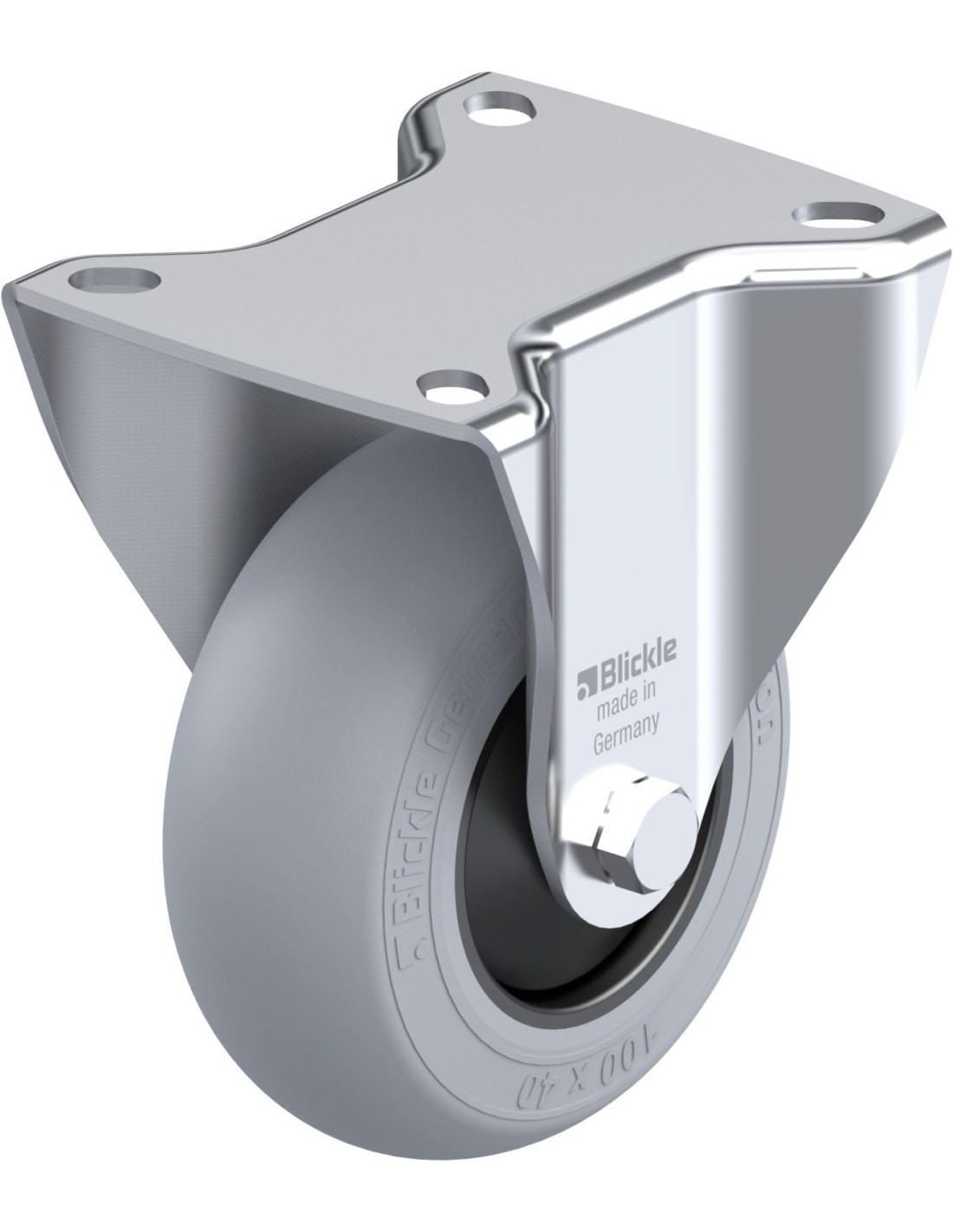 - padanga: aukštos kokybės elastinga kietoji guma „Blickle SoftMotion“, kietumas 55 Shore A, spalva pilka, nepalieka žymių