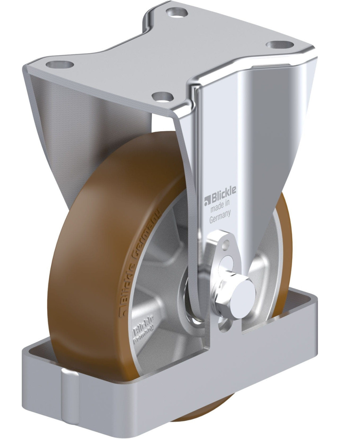 • protektorius: aukštos kokybės poliuretano elastomeras Blickle Besthane®, kietumas 92 Shore A, spalva rudas, nepalieka žymių, nepalieka dėmių