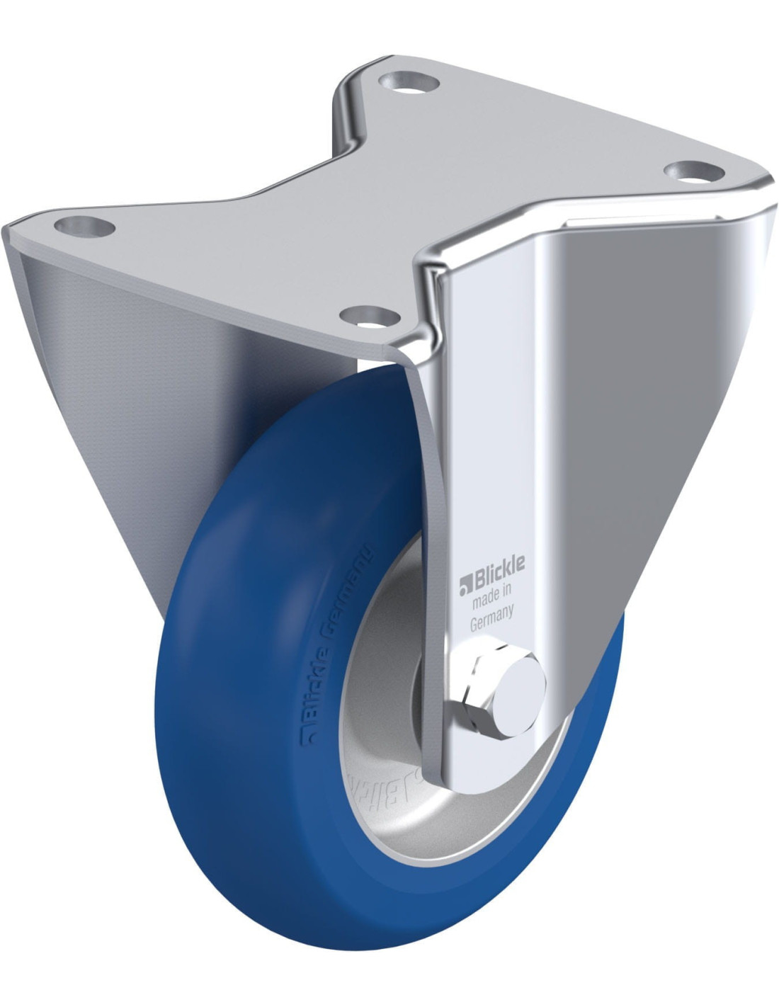 • protektorius: aukštos kokybės poliuretano elastomeras Blickle Besthane® Soft, kietumas 75 Shore A, spalva mėlyna, nepalieka žymių, nepalieka dėmių